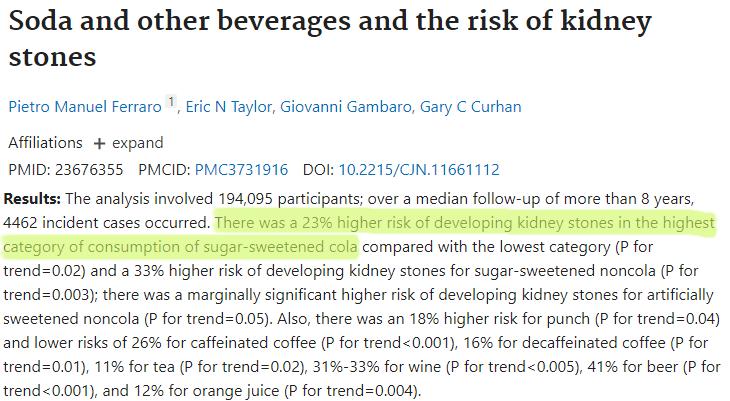 [2] Pietro Manuel Ferraro, Eric N. Taylor, Giovanni Gambaro and Gary C. Curhan. Soda and Other Beverages and the Risk of Kidney Stones. CJASN August 2013, 8 (8) 1389-1395.