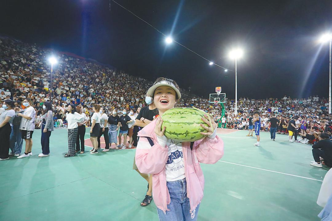 一名观众在游戏环节赢得西瓜。张 奎 摄(人民视觉)