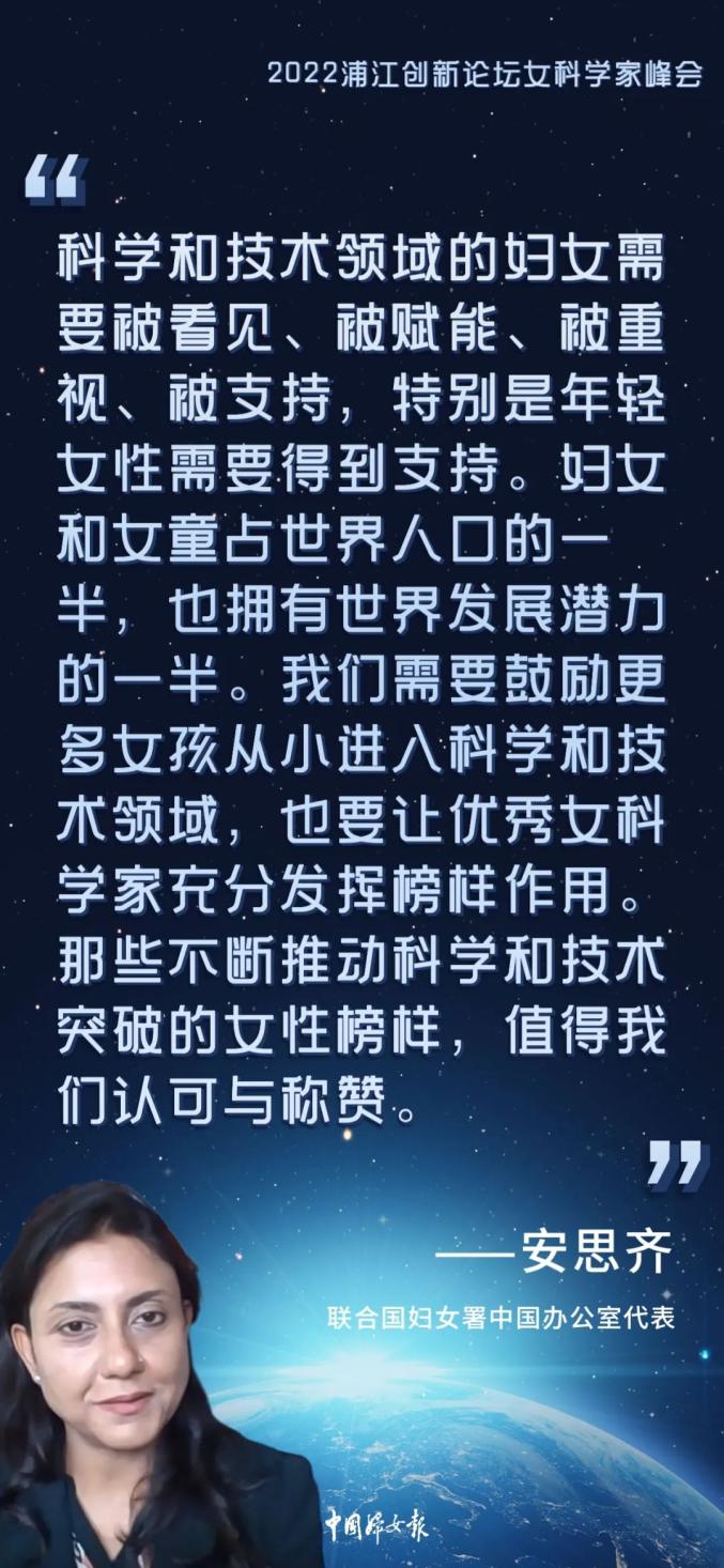 为了加速这一进程,安思齐提出,必须确保妇女和女童得到充分和平等的资助支持,同时也要促进代际沟通,让年轻女孩和女性科学榜样建立连接,让女科学家成为她们的人生和职业发展导师。