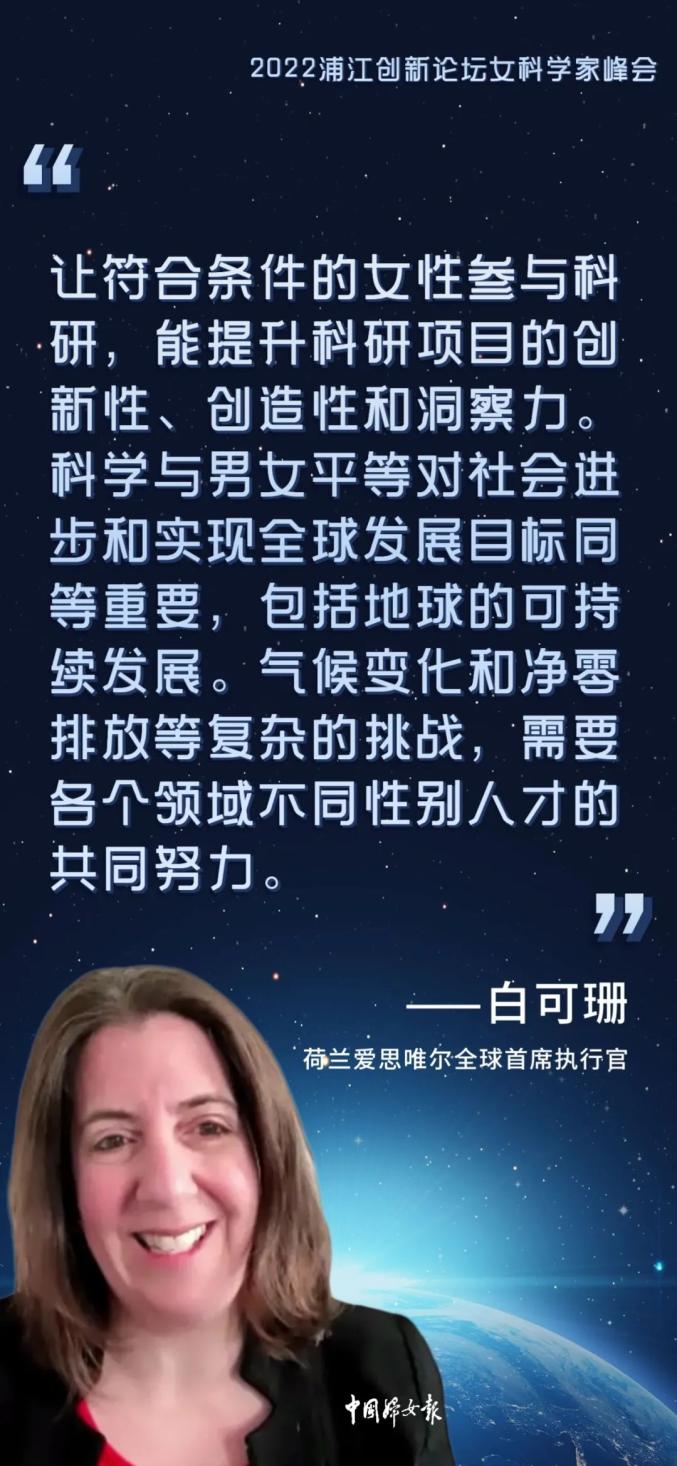 白可珊认为,科学与男女平等对社会进步和实现全球发展目标同等重要,包括地球的可持续发展,要一同打造绿色公平的未来。