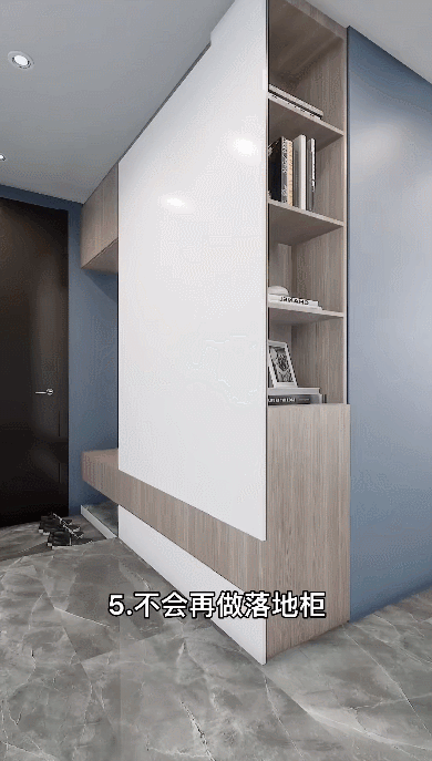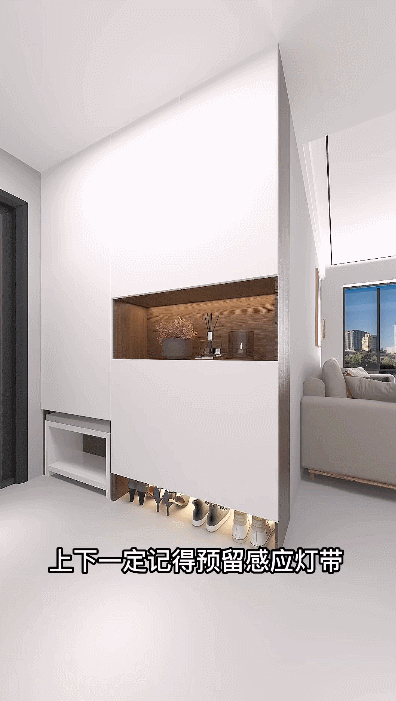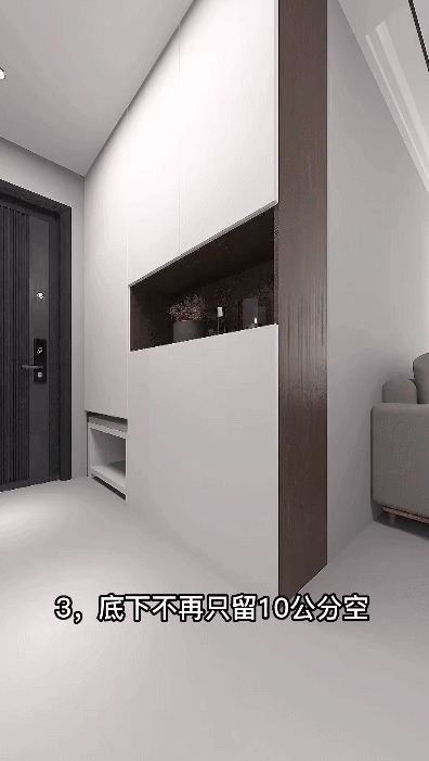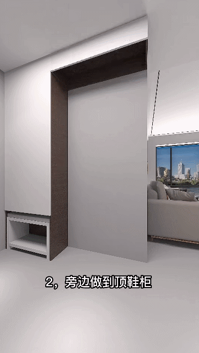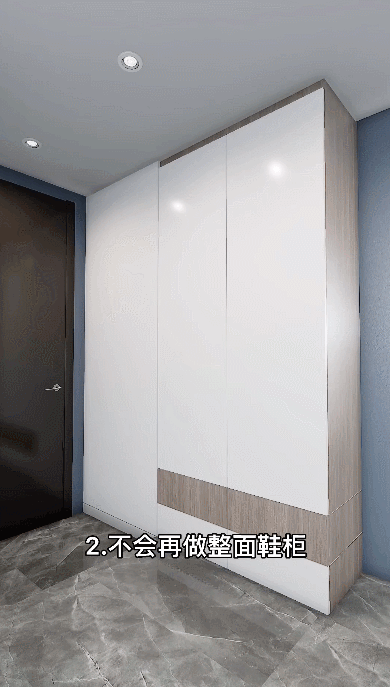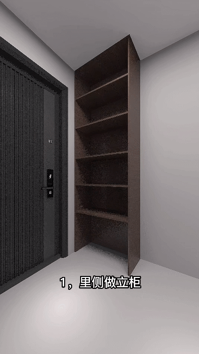 一侧做薄柜,挂入冬天换下来不急洗的大衣,减少灰尘带入室内。柜门内侧可以加一面换衣镜,方便检查自己的仪表。