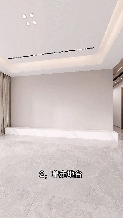 地面抬高做地台,有小孩的家庭很容易磕碰,是万万不能要的。悬空+边缘斜角处理的壁柜会相对来说也会减轻一部分安全隐患。