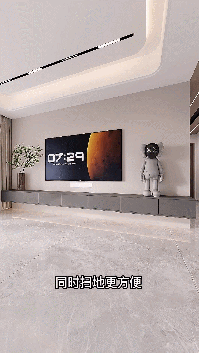 侧柜的底部可以做存放扫地机器人的空挡,以及预留插座。懒人经济必备!