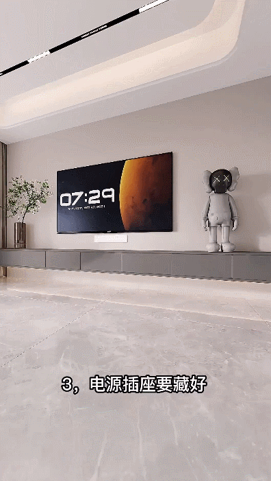 图源:@小师妹曼玉确定好电视机位置以后,可以在墙内预埋50mm圆管连接到柜内,