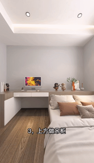 如果说减少了收纳空间,可以在组合柜上方做一排吊柜。放一些被褥、和不常穿的衣服也可以轻松收纳。