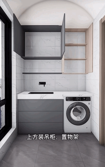 现在已经有很多人喜欢将洗衣区设置在阳台,使洗衣、晾晒一步到位,非常的便捷。