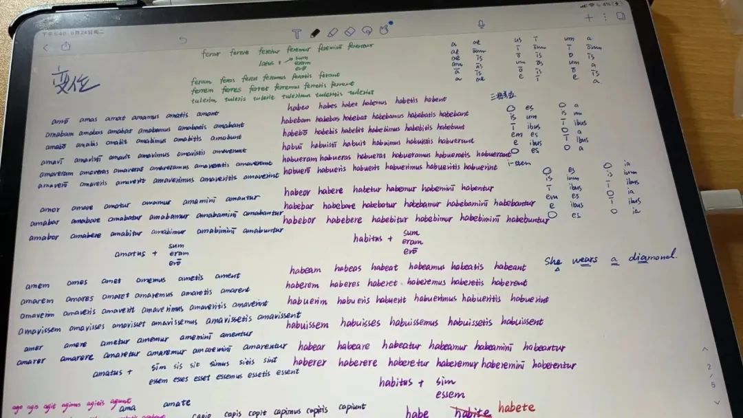 | 莫莫的拉丁文笔记与类似“心理学学程”的专业学程不同,西方古典学学程作为由历史学系、哲学学院和中文系联合开设的跨学科学程课程,并没有对应的本科专业。授课的老师们特别欢迎其他系的学生前来修读,“你去选课老师会很开心的喔”,莫莫说。