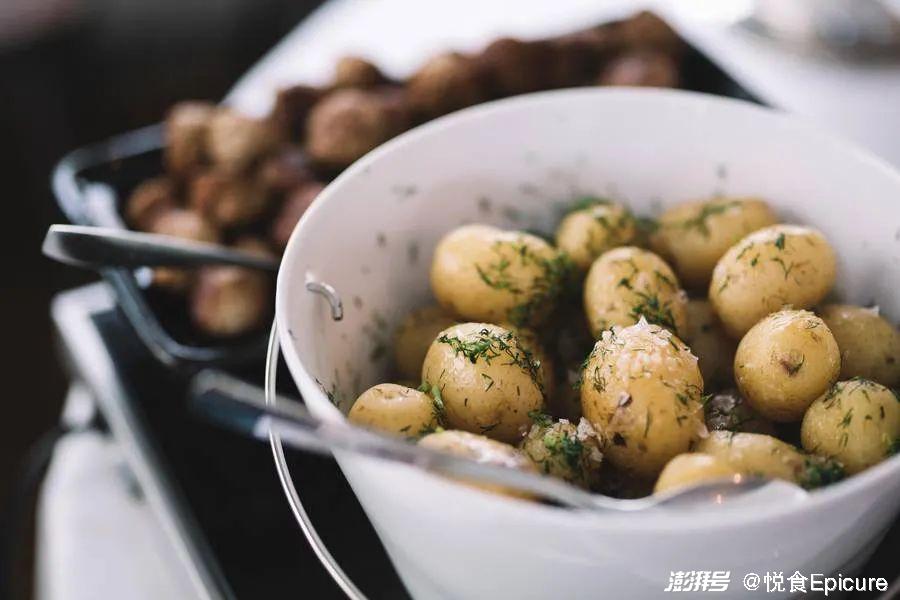水煮土豆是斯堪的纳维亚半岛最为通行的料理方式,土豆煮熟后趁热涂上一片薄薄的黄油,看着黄油一滴滴融化在土豆细腻绵软的瓤儿里,再简单撒上点盐和黑胡椒就可直接开动了。