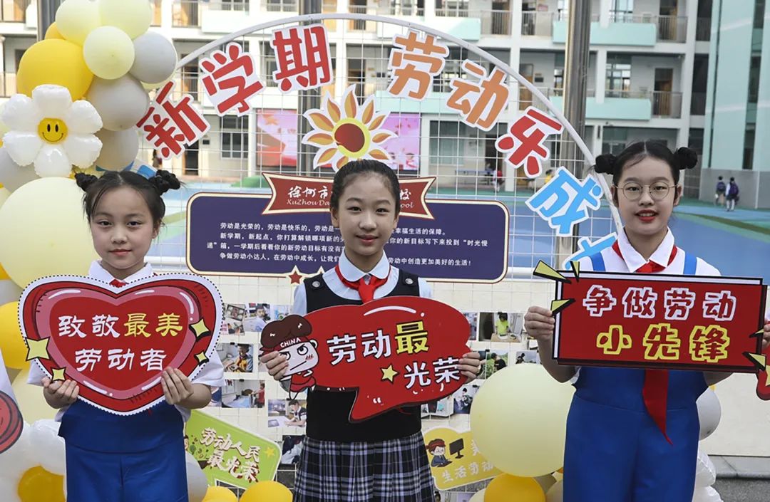在徐州市云兴小学,劳动教育已作为一门独立科目出现在学校秋季学期课程表上,每班每周安排1课时。大马路小学、少华街小学、碧水湾小学等学校的课程表中也均列入了劳动课,并在开学典礼上融入了劳动教育。开学第一天,民主实验学校把“开学第一课”搬到了校园的“火星农植园”,学习辨识收获成熟的土豆、清理各班责任田里的杂草。孩子们尽管双手和鞋子上沾满泥土,却笑得很开心。