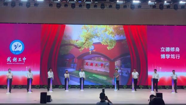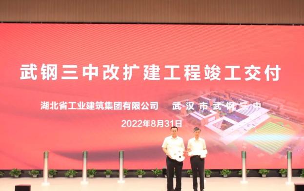 8月31日,武钢三中改扩建工程竣工交付暨新武钢三中揭牌仪式在新校区崇正楼举行。湖北联投集团党委副书记、副总经理刘光辉,湖北工建集团党委委员、常务副总经理陈常青,青山片区项目总指挥马冬青参加交付仪式。