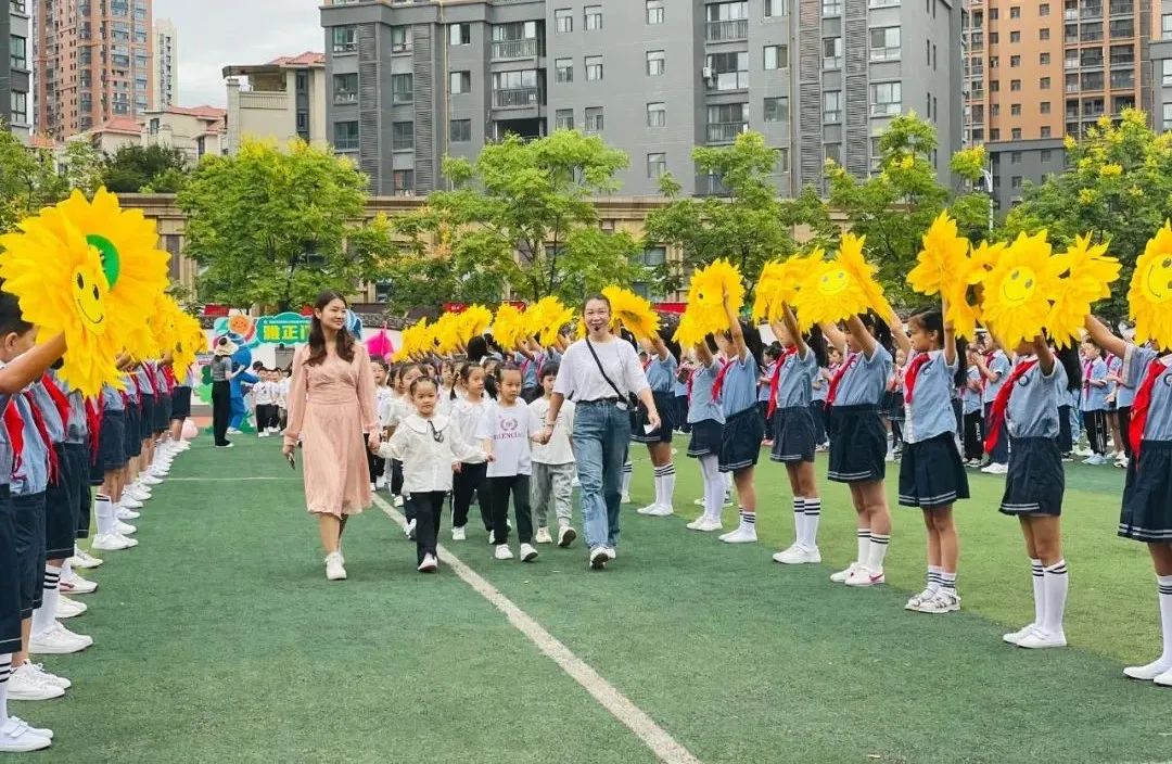 一年级新生牵着老师们的手走过雅正门,在小雅小正的带领下步入会场,并收到了新学期礼物——植物种子。拜师礼、朱砂启智、击鼓明志、齐跳开学舞,全校师生在满满的仪式感中迎接新学期的到来。