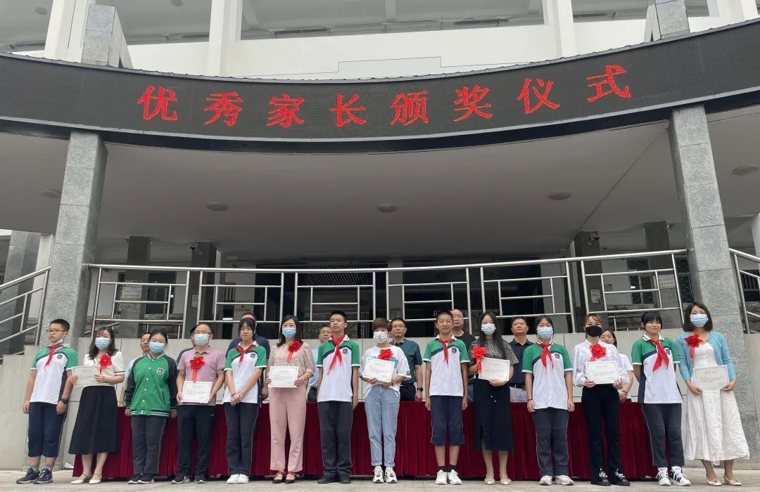 伍家实初2022年秋开学典礼上,学校领导为优秀家长代表颁发荣誉证书,学生为父母佩戴大红花,以表亲恩。