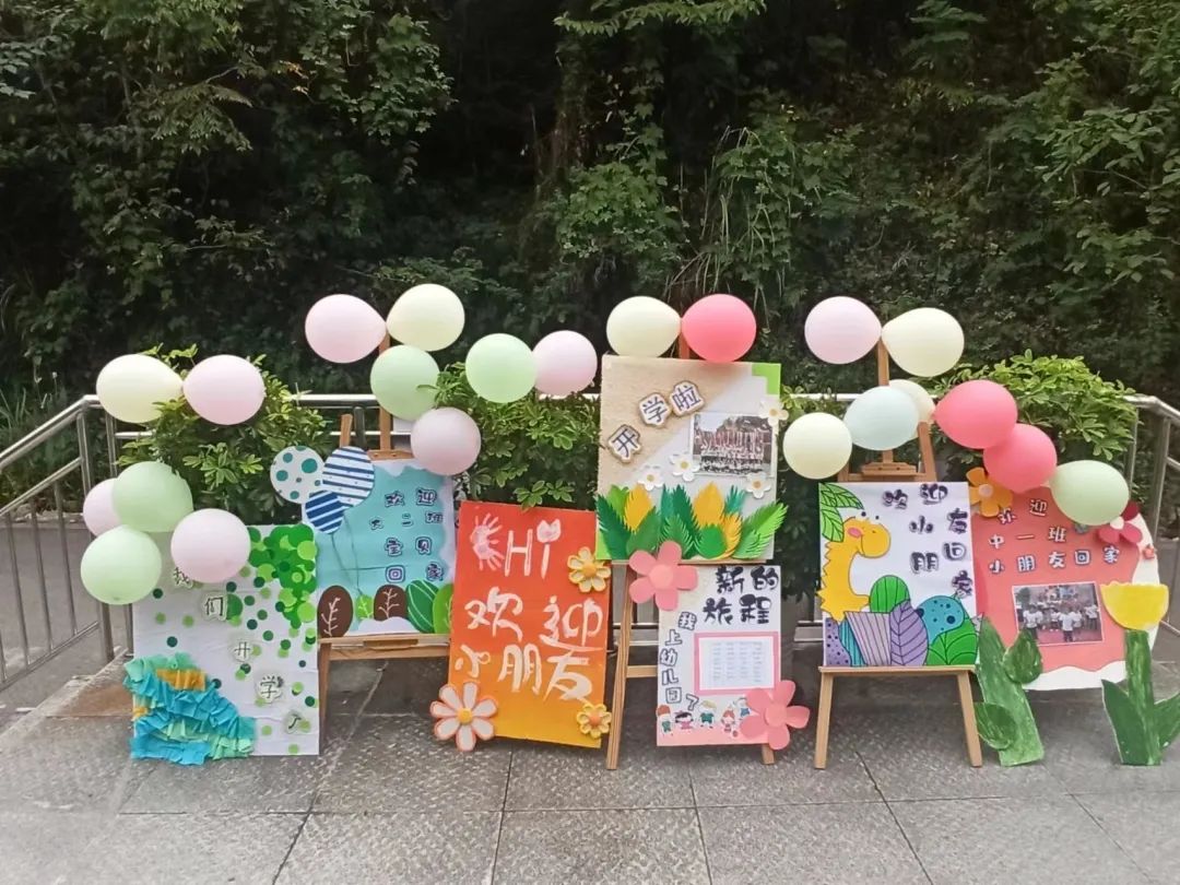 月亮湾幼儿园的老师们精心制作开学展板,欢迎小朋友回到月幼温暖的大家庭。