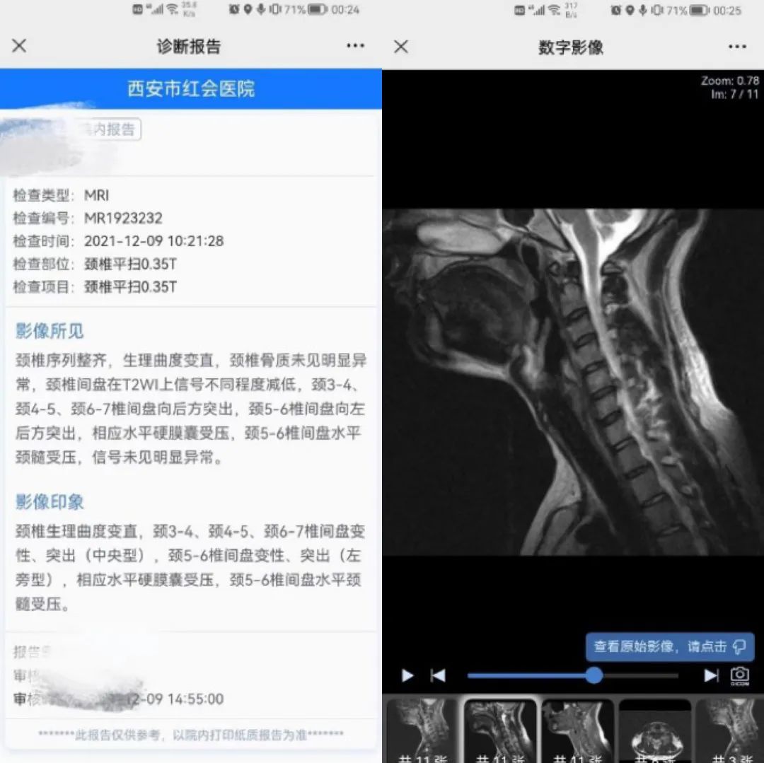 核磁检查结果丨作者供图“如果做颈椎间盘置换术,或者椎体融合术,可以从根本上改变你的病情。前者是用一个人工椎间盘替代天然的椎间盘,后者是直接用外力固定上下两个椎体,挖空中间的部分,让上下两块骨头慢慢长到一起。”