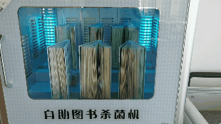 自助借阅后,可以用自助图书杀菌机,对于孩子来说还是挺稀奇的。