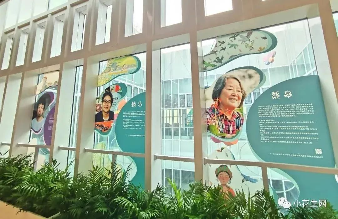 少儿展厅有专门的国内优秀原创展区,比如艺术家的介绍,对应的书籍便会陈列在其照片下。