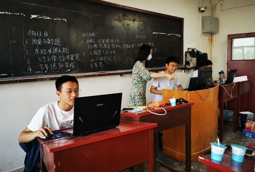 2022年6月底,结束了考试周的繁忙,队员们开始全身心投入线下备赛,整个暑期,团队放弃一切娱乐,在南校区主楼632教室进行搭建教室赛道,备赛编程以及调试赛车等一系列实车调试。队员们在教室里吃饭、工作,攻坚克难、共同进步,结成了深厚的友谊。