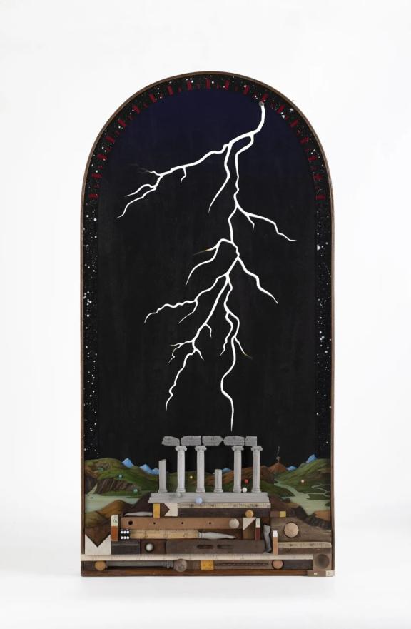 《穹顶与刻度》 倪有鱼 综合材料 78 × 40 × 7 cm 2022 图片由艺术家提供在倪有鱼看来,穹顶与刻度恰好对应着宇宙与人类。宇宙是无法被测量的,但人类以自身的认知为尺试图描述它。在这种能与不能之间,作品的张力被一一呈现。
