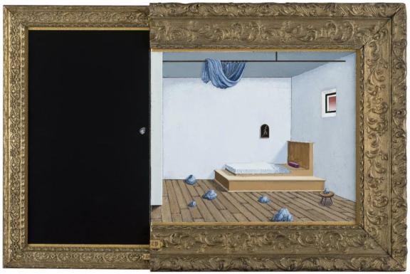 《梦的解析3》 倪有鱼 布面综合材料及古董画框 37 × 44.5 cm 2022 图片由艺术家提供