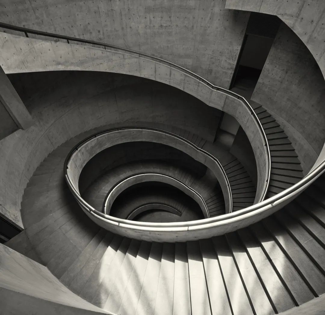 和美术馆清水混凝土双螺旋楼梯 ©️和美术馆