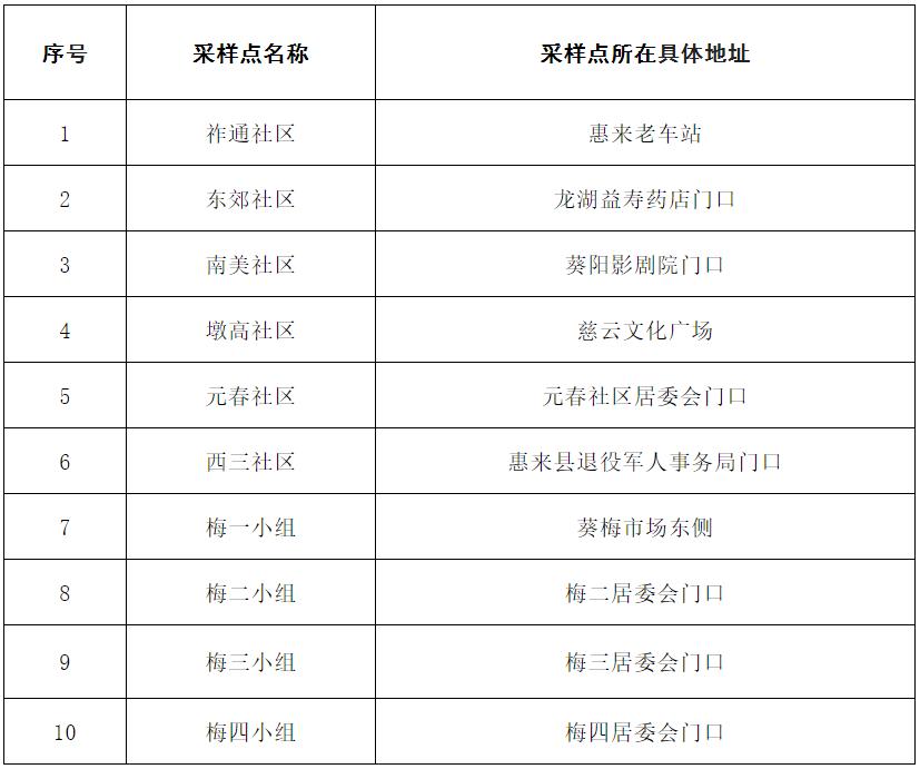 根据疫情防控需要,9月3日起在县城区设置10个“黄码”临时核酸采样点,方便县城区“黄码”人员就近进行核酸检测,服务时间为上午8时30分至晚上10时。
