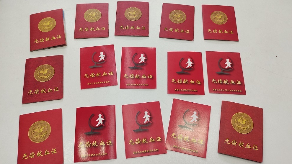 采访张伟芹当天,她向记者展示了一沓红彤彤的无偿献血证。其中包含她丈夫的9张,以及她自己的13张。她笑笑说:“还有3张不小心遗失了。”