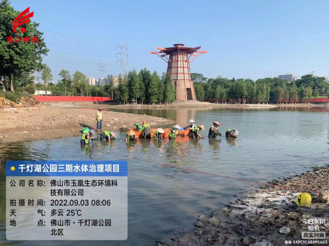 玉凰生态工作人员在进行千灯湖公园三期水体治理。