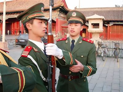 “要经过站功、走功、持枪功三关磨炼和考验,才能成为一名合格的国旗护卫队队员。”徐宏伟说,“为了练站功,早些年训练过程中,我们右手托枪迎着太阳练耐力,顶着大风练不眨眼,领口上别着6根大头针。刚调入的队员,每天要训练10多个小时,一天下来,脖子上经常被扎好几个针孔。”