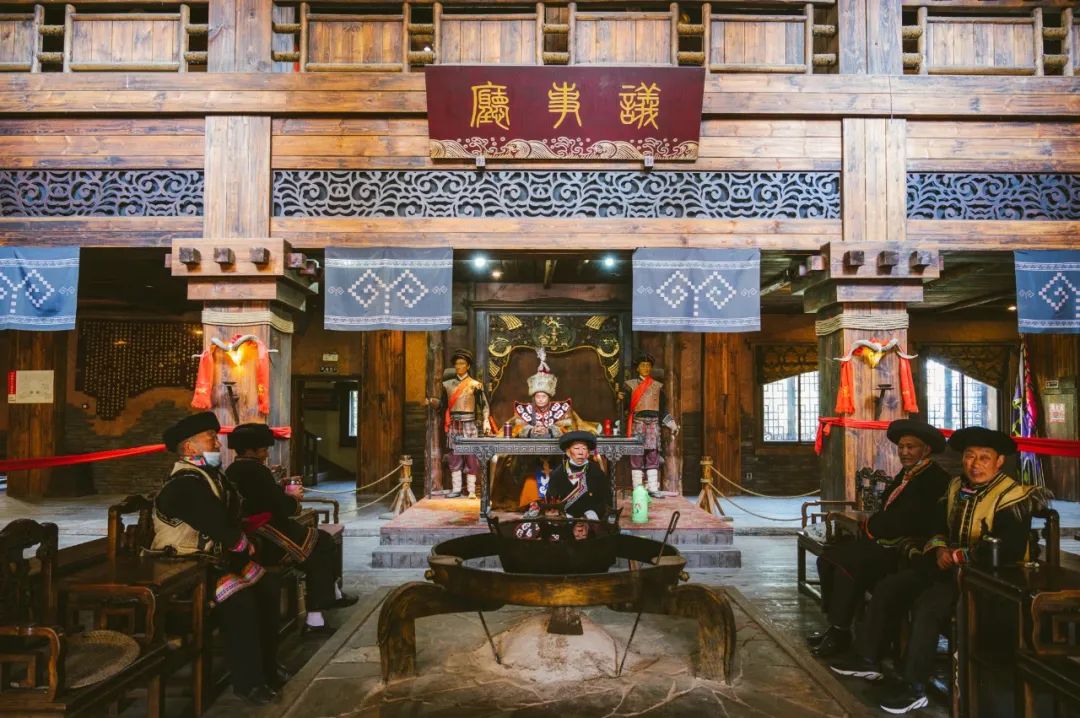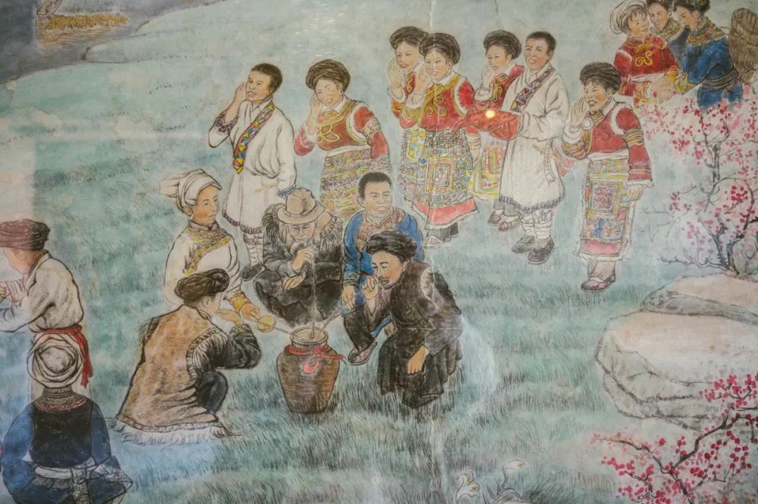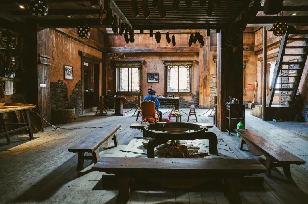 此外,羌王官寨里还布置了许多画作与老照片,传神的展示出羌族人在祭祀、聚会、婚娶、农耕等各个场景。游客在这里,不但能感受羌族土司的生活,还能近距离了解羌族传统社会的方方面面。