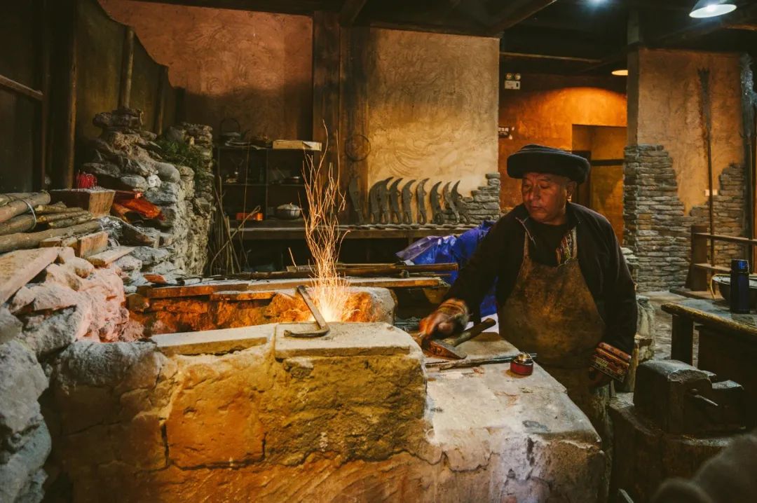 古羌城最硬核的,无疑是“非物质文化遗产传习中心”,这是抢救、挖掘、保护、传承、弘扬羌文化的工作场所。在这里遇到的做手工或者做表演的老师傅,大部分都是扫地僧级别的非遗传承人。