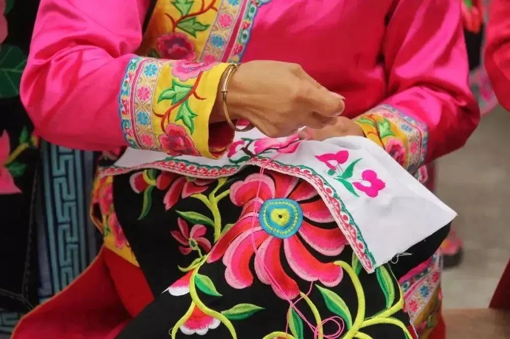 羌绣色彩突出、图案多样、做工精巧,技艺上吸收了多种刺绣工艺,风格方面充满了民族审美品味。