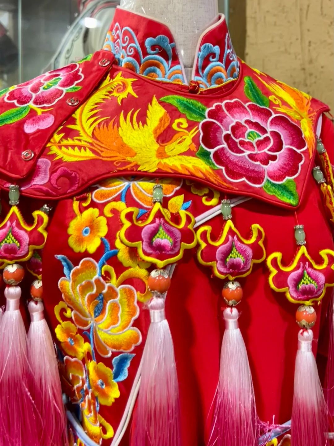 大概也是因为在个性表达方面更加自由奔放,羌绣越来越受年轻人欢迎。羌绣工艺品作为妆点生活空间的配饰,也受到女性消费者的喜爱。如今的羌绣,不但实现了非遗技艺的活态传承,还形成了产业,成为羌族女性创业增收的一个风口。而在茂县羌城的非遗展示区里,羌绣展台格外的大、展品也格外的丰富。