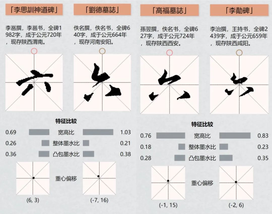 碑帖的时间分布和字在碑帖上的频率分布碑帖字形定量对比