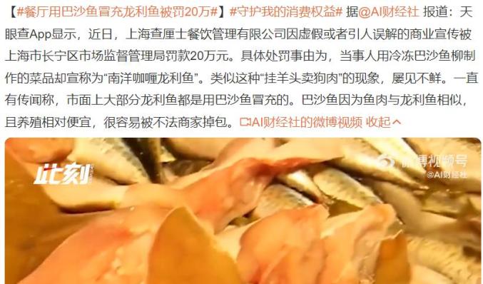 图片来源:新浪微博曾经就有一些餐饮公司因为使用巴沙鱼冒充龙利鱼,被市场监督管理局罚款二十万。为什么巴沙鱼能冒充龙利鱼?到底什么才是巴沙鱼,它和龙利鱼又有什么区别呢?