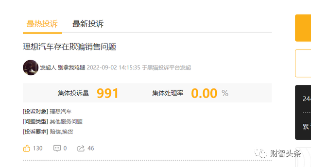 据黑猫投诉网消息,一起关于“理想汽车存在欺骗销售问题”的集体投诉,截止目前投诉量已经达到了991。集体投诉的发起人“别拿我鸡腿”表示,自己于2022年6月30日订购了一辆理想one,当时售价为34.98万元,在订购之时,销售、汽车生产商统一口径,未提及该车辆升级换代停产以及降价等相关事宜,问到该问题时,也均表示没有此计划,并保证全国统一价格,不存在降价的情况。8月19日,完成提车后,未到12天,理想汽车公司就公布理想one汽车将升级换代停产,并优惠两万元销售。种种行为,存在对本人欺骗、隐瞒、虚假宣传等问题,造成本人损失。
