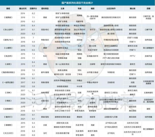 这会埋下不同的隐患。比如,为了趁势推出下一部而压缩剧本创作时间,剧作质量也会随之下降。随着系列化形成趋势,也有片方在有意向时同步准备剧本,再依据市场反馈做最终决定,但能不能用得上又是另一回事了。再者,缺乏前期规划也会影响其它生产要素。不止是演员难以回归,也包括编剧、导演等主创。从过往的国产系列剧来看,大部分项目都没能保持统一班底。