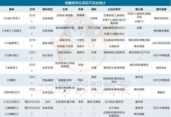 还有部分系列让观众陷入漫无边际的等待。《庆余年》《大宋少年志》都播出于2019年,但第二季都迟迟未开机,前者还处于剧本阶段,#李小冉说庆余年2剧本还没出来#于昨日登上热搜,后者的最新进展则是网传将于9月开机。