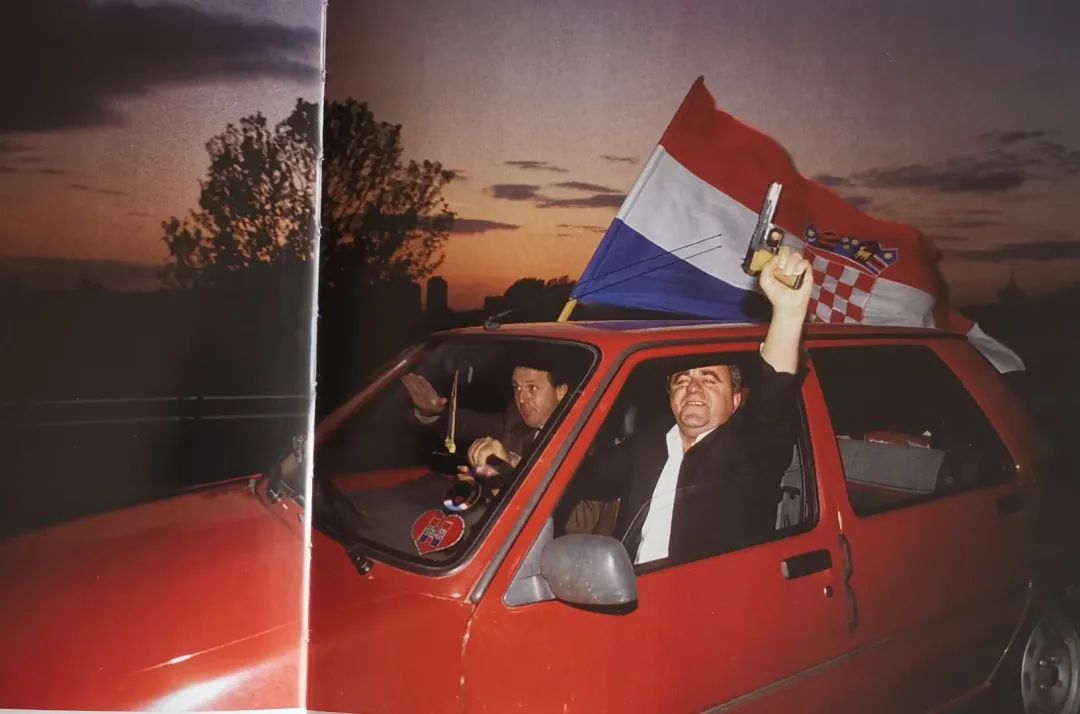 【学习笔记】画面中的克罗地亚人正在庆祝国家独立日。对着背景中的天空进行曝光,闪光灯也设为相同光圈。这样就能平衡画面的前景光与背景光,同时保留黄昏下的细节。(1991年)