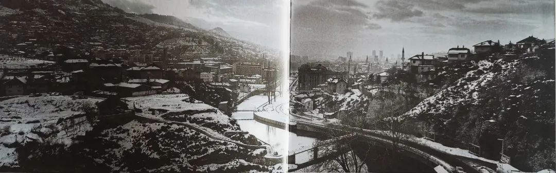 【学习笔记】这幅照片是摄影师用一台6厘米x17厘米的富士专业全景相机拍照的,当时萨拉热窝正遭到围困。许多数码相机都有全景模式,或者可以拍摄一系列重叠图像,然后通过后期加工将它们拼接成全景图像。(1994年)