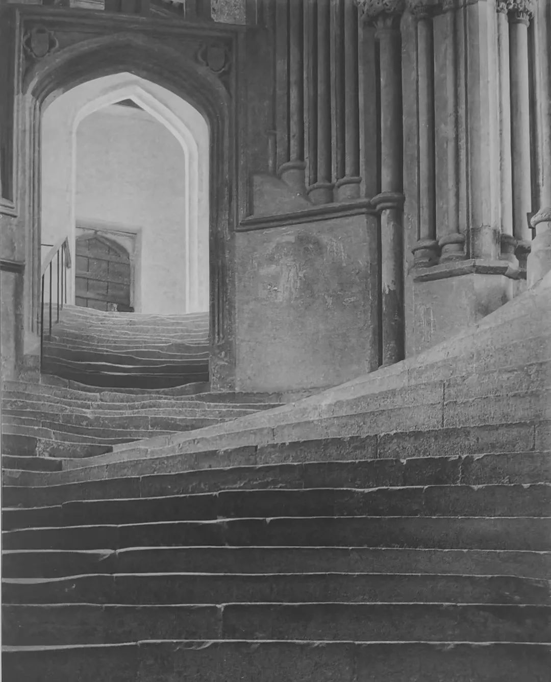 【学习笔记】英国摄影师弗雷德里克•H.埃文斯在拍摄前的准备工作可谓一丝不苟。他会花上几天时间待在要拍摄的教堂里,仔细观察光线的变化,做出调整以达到最好的曝光。这幅照片可能是他拍摄的最伟大的照片,当然也是经过了长时间准备的结果。三年间,他数次回到萨默塞特郡的韦尔斯大教堂,最终才拍下了这幅杰作《阶梯的海洋,韦尔斯大教堂》。埃文斯对照片所囊括的雄伟、神圣以及时间流逝感做了最好的诠释:“台阶一级一级陡峭地升高,上半部分已经严重磨损了,一直延伸到走廊,它们现在呈现出来的就是吸引我的那个样子,一片真正的由阶梯组成的海洋。许多年来,成百上千的脚步踏过这里,台阶完成了使命,由于磨损而变成了碎浪,慢慢拍打着宁静的海滩。”由于照片实在是太出名了,他拍摄照片的位置被标记在了教堂的地板上,以便后来者能准确地把三角架放在同样的位置上。(1903年)