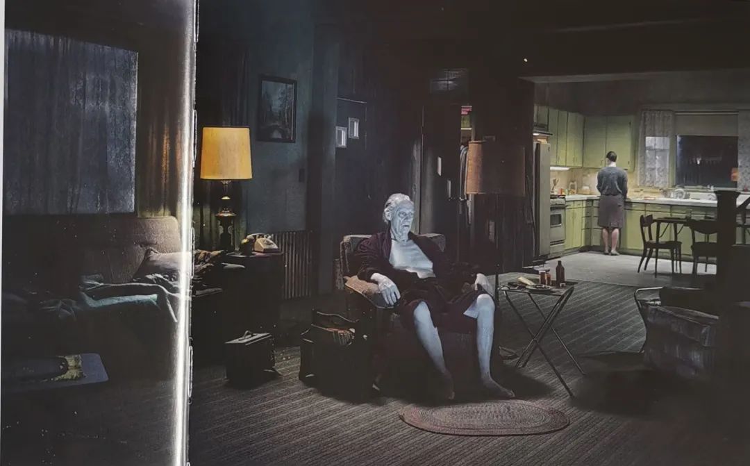 【学习笔记】老人呆呆地坐在那儿,盯着似乎在画面外的什么东西,使他凸显在这个日常家庭生活场景的正中央。美国摄影师格里高利•克鲁德逊的这幅题为《父亲》的照片尽管看上去很美,但总有种东西让人感觉不对。他认为他的“照片首先要美,但只有美又是远远不够的,我尽力通过照片表达一种内在的焦虑、孤独和恐惧”。(2007年)