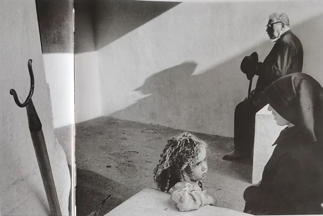 【学习笔记】捷克摄影师约瑟夫•冠德卡在成为全职摄影师之前,一直是一名航空工程师,他因为匿名发表了反映苏联入侵布拉格的重磅照片而成为一名政治流亡者,一直过着游牧式的生活。而他认为游牧生活方式是作为一名摄影师的自然选择。他的这幅影像充分发挥了光影的作用,投射在墙上的男人的剪影像一个木偶。三角形构图在画面中营造了强烈的对角线运动感,将观众的目光引导到关键人物的身上。笼罩着神秘色彩的女人,天使般的孩子,以及农人的弯钩叉,都给影像增加了复杂性,让观众对场景的叙事产生联想。对他来说,一幅好照片就是能够给看到他的每一个人讲述一个不同的故事。(1976年)