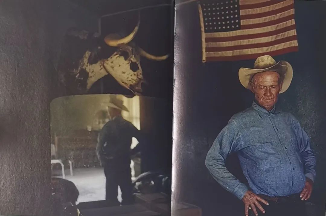 【学习笔记】美国摄影师威廉•阿尔佰特•阿拉德拍摄的这幅表现有力地刻画一位上了年纪的老牛仔的照片,反映了照片中的主角——72岁的享利•格雷,曾做过52年的农场主,但美国政府希望他的牛离开这片土地。阿拉德回忆道:“我们搬家了…”享利停顿了一下,迷失在自己思绪中,他的身后是48颗星的美国国旗。”阿拉德在一个画面中囊括了这个男人的全部生活,国旗、公牛的头、他的帽子和他的倒影,形成一个有力的环形构图,代表着格雷的内部和外部世界。他消沉的表情诉说着一个时代的结束。像这幅照片一样,阿拉德的许多照片都有一个停顿的时刻,因为他相信“安静的照片能够产生共鸣和力量”。(1970年)