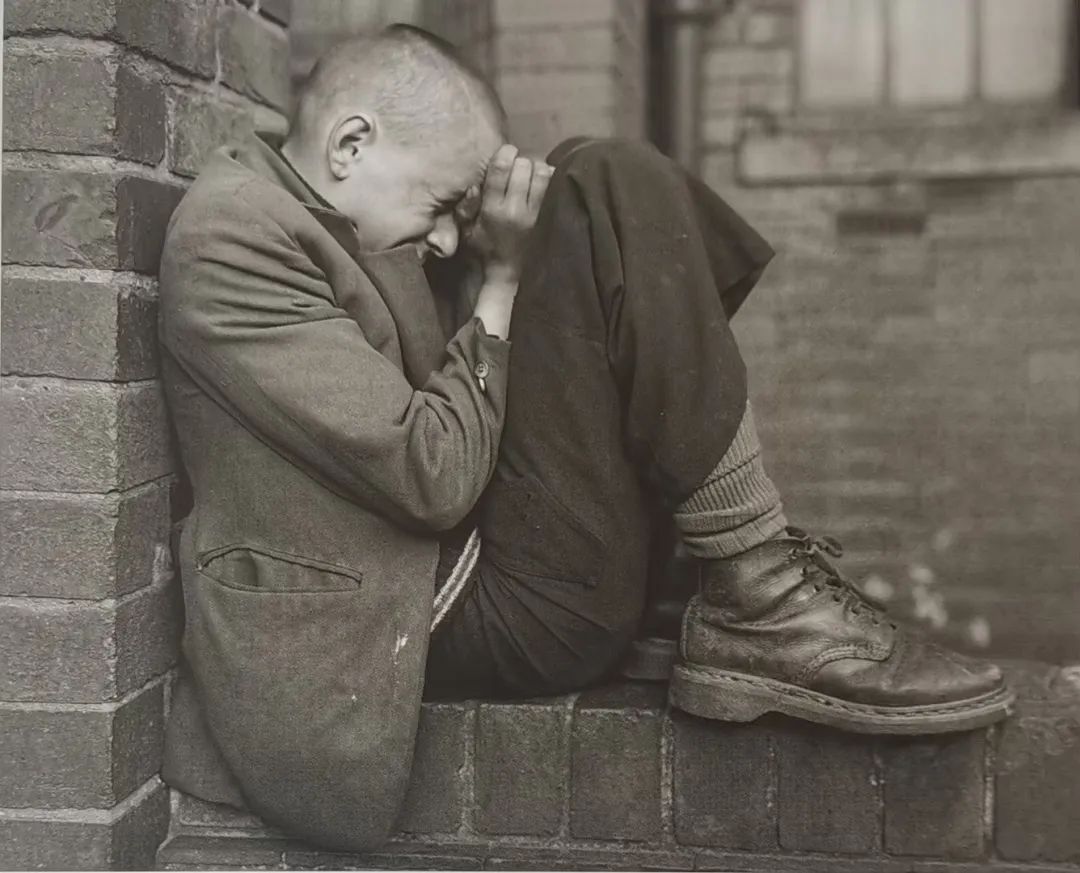 【学习笔记】:英国摄影师克里斯•基利普出生在马恩岛的道格拉斯,学的是酒店管理,后来决定成为全职摄影,以便赚到足够的钱离开这个岛,后来获得了北方艺术摄影协会的奖学金,最终于1994年成为美国哈佛大学终身教授。他拍摄的这幅照片中穿着大号马丁靴的男孩,似乎概括了迷失的一代北方工人阶级的挫败感和愤怒,他们的经济前景因为英国工业基地的崩溃而毁于一旦。克里斯花了八年时间,克服社区对他的出现所产生的抵触情绪,并跟他们一起住了一年多。他在纽卡斯尔住了十五年,为了进入现场去拍摄海运煤工人就花了八年。因此,他的图像显现的看起来更像是一个在中世纪或未日后的艰难劳动场景,而不是位于世界上最富有的国家之一。(1976年)