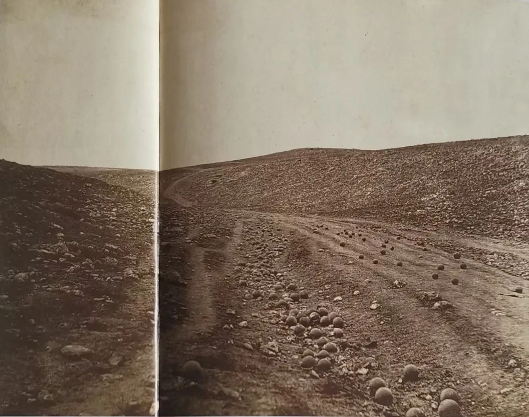 【学习笔记•一O六】:英国摄影师罗杰•芬顿在短短十一年的摄影职业生涯里就确立了自己作为当时最重要的摄影师之一的地位。从风光和肖像摄影到建筑和静物摄影,都表现出色。并受当时维多利亚女王邀请,拍摄王室的私人生活。芬顿在“死亡之谷”拍摄了这幅照片,这个山谷因丁尼生的诗歌《轻骑兵》中的诗句而得名。然而,围绕这幅照片存在一些异议,因为在另一张负片中,路上没有加农炮炮弹。研究表明,那幅照片是在这幅更出名的照片之前拍摄的,芬顿或其他人把炮弹搬回到了道路上,可能是为了模拟他几天前看到过的场景。这幅图像中的地平线大约从下往上在整个画面的三分之二处,道路与河床的线条都聚向地平线上的一个消失点,再次以三分之一的方式贯穿整个画面。这给画面创造了一种强烈的运动感。(1855年)