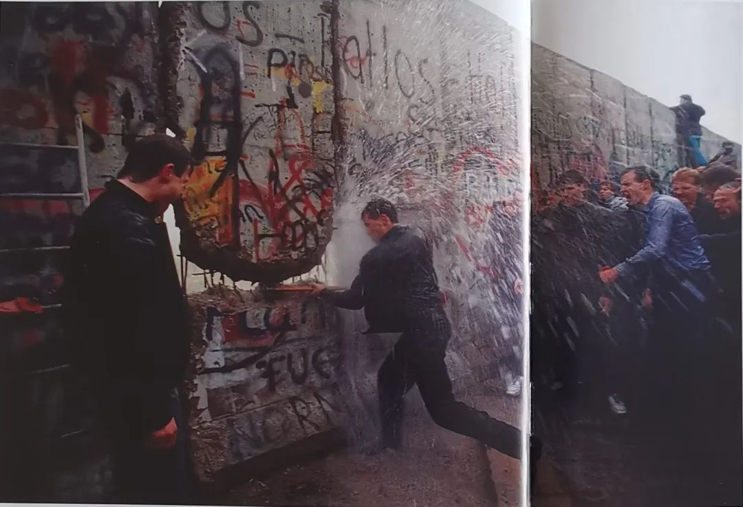 【学习笔记】:美国摄影师安东尼•苏奥赢得过包括两次世界新闻摄影比赛(通称“荷赛”)在内的年度大奖。他拍摄的这幅照片忠实记录了一个历史性的时刻:柏林墙的倒下,捕捉到了它的戏剧性和巨大能量。广角镜头直接把我们带入现场,在四溅的水雾中,柏林市民摧毁了这一令人痛恨的分裂象【学习笔记•一一四】:美国摄影师苏珊•梅塞拉斯在上世纪80年代初被称为新一代的“关注派”新闻摄影师。并于1992年获得了麦克阿瑟奖。他对历史进程和图像在现在是如何对过去形式的看法发挥的作用非常着迷。这张画框中拍摄于1978年的照片最初出现在她极具开创性的书籍《尼加拉瓜》(1981年)中,在开车行驶在马那瓜郊区一座名为古斯塔德坡扯莫的山丘旁时,她看到一具已经被秃鹫吃了一半的尸体。这幅尸体照片具有强大的震撼力,因为它和周围的美丽风景形成了鲜明的对比。她对色彩的使用,以及她的主观方法给新闻摄影带来了新的能量。2004年梅塞拉斯回到尼加拉瓜,她将书中的图像作品搬到了户外,海报似的巨大壁画,安装在了起初照片拍摄时的确切位置。这幅完全融入了周围风景中的照片就是其中一幅。“重塑历史”项目涉及与当地社区配合工作,创造一个有共同回忆的地方,并使照片的功能从当初的商业价值转变为一种连接历史进程的方式。(2004年)征一→柏林墙。苏奥意识到:1989年11月展现在面前的是一个不朽事件,“柏林墙的倒塌绝对是一个特殊的时刻,是一个能够改变世界的重大事件,足以载入史册”。(1989年)