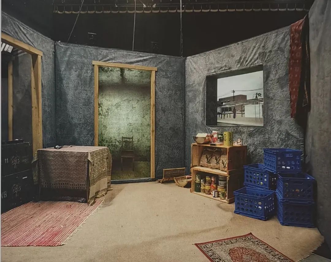 【学习笔记】英国女摄影师丽巴•巴纳德拍摄的这幅照片是一个舞台布景,位于加利福尼亚州的一间仓库里,美国军方用它来进行士兵作战训练。这个布景是一个沉浸式虚拟现实世界的一部分,结合电脑制作的虚拟人物、物体和特效,让士兵仿佛与真人和真实的物体打交道。整体环境复制了士兵在伊拉克服役的体验,气味、声音、图像和真人大小的武装分子全息影像组合在一起,变成了真实地点的“高保真复制品”,并且几乎变得太过真实,变得比事件或物体本身看上去还要更真实。(2008年)