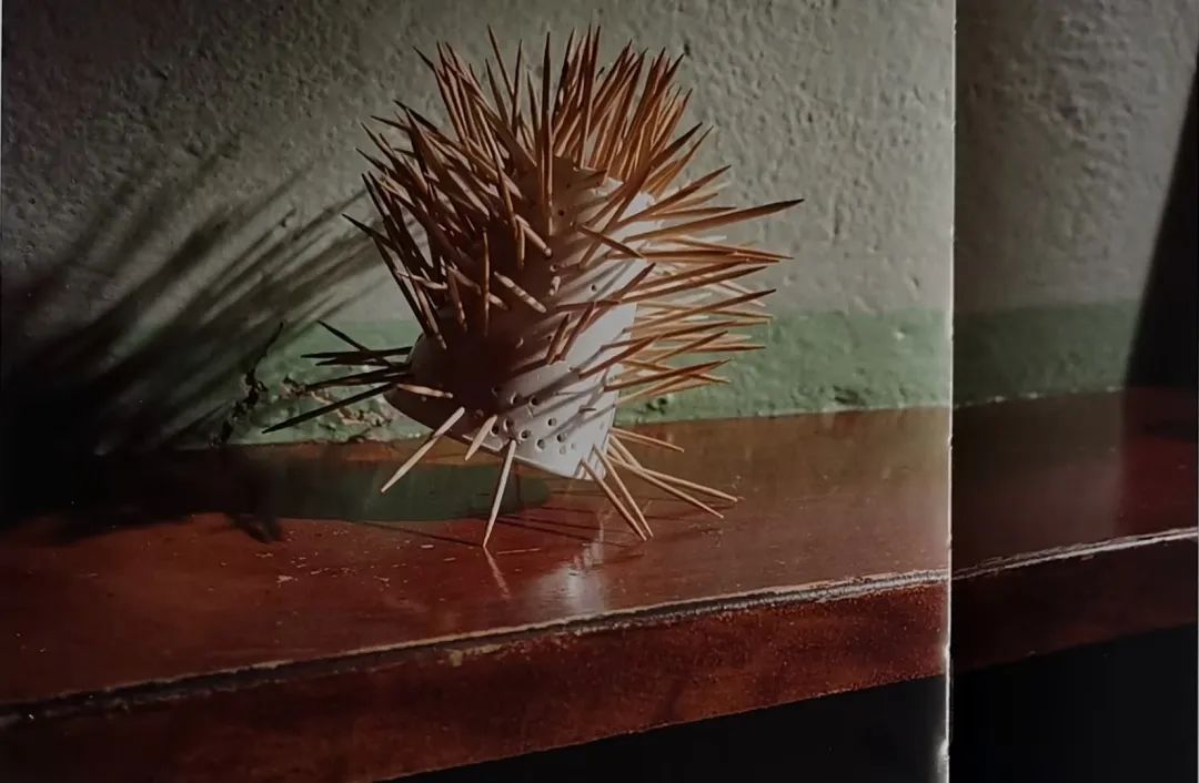 【学习笔记】美国摄影师彼得•弗雷泽拍摄的这个造型奇特的物体看上去就像活的一样,就像一个结构精巧的外星刺猬正沿着架子爬行?很明显,这个物体是人造产物,上面空着的小洞暗示最终结果并不完美。倾泻在场景的强光营造出一种横穿画面的动感以及带有精神品格的强烈色彩。他认为这个东西是“大脑支配双手改变物质属性的典范。”(2006年)