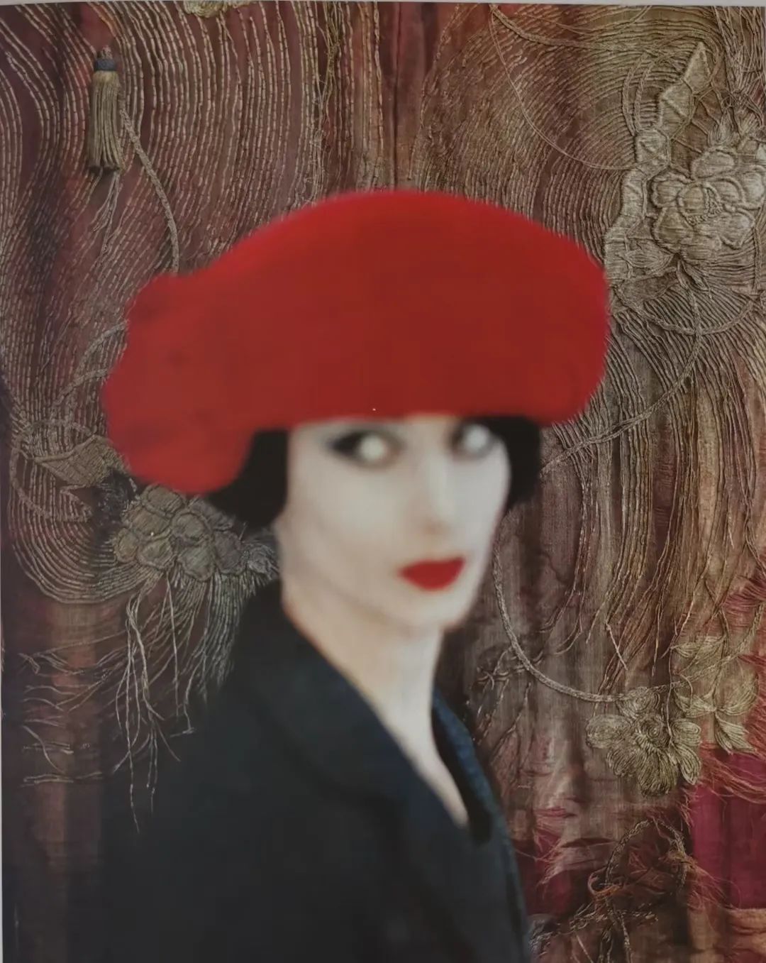 【学习笔记】这幅引人注目的照片是英国摄影师诺曼•帕金森运用色彩的眼光、简洁而富有戏剧性的构图以及智慧与幽默的典型体现。摄影师通过这幅照片富有创意的完成委托摄影任务提供了一个示范实例。这顶无边女帽的简洁外形及其富有戏剧性的红色得到了凸显。模特的红唇与双眼组成了一个倒三角形,与帽子的形状及颜色交相辉映。模特的目光是看向画面之外的,这让画面有了一种轻盈而梦幻的感觉。如果模特直视相机镜头,这幅作品的意境就没有了。(1959年)