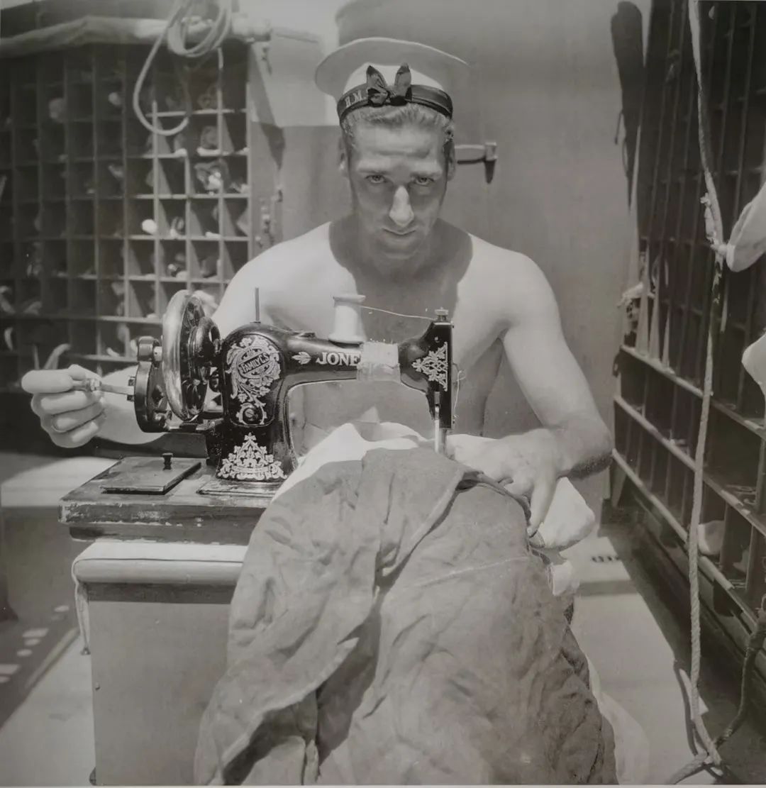 【学习笔记】英国摄影师塞西尔•比顿的目标很明确:拍摄最为激动人心的照片,凝聚人心,提振士气。于是,在1941年在去往塞拉力昂的途中,比顿拍下了这幅吸引人的照片:一名正在操作缝纫机的水手帅气而肌肉发达,光着膀子、歪戴着帽子,身上散发着幽默感和时尚感,比顿作为时尚摄影师的经验在这幅照片中有明显的体现。与被摄对象的目光接触,在这里显得尤为重要,照片因此有了一种狡黠而玩乐的气息,流露出一种英国式的精神。(1941年)